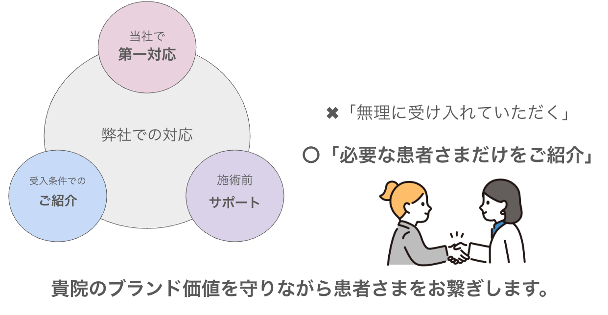 貴院のブランド価値を守りながら患者さまをお繋ぎします。